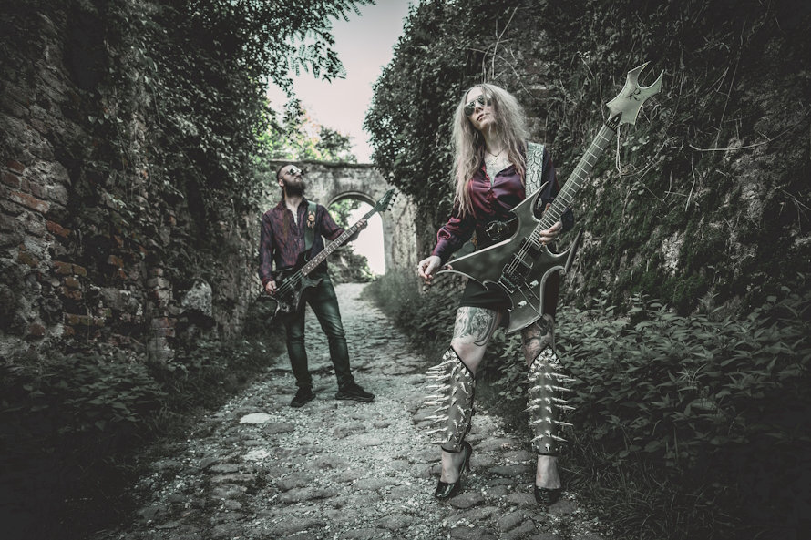 Founded by Christina Earlymorn (guitars/vocals) in 2017, St. Unholyness was born from a lifetime of scars and survival. After years immersed in black metal, Christina sought a broader sonic canvas – one that could merge doom, groove, blues, and extremity into a singular, unholy sound. With Mac Carrigan on bass, the lineup solidified, providing thunderous low end beneath Christina’s chrome-plated riffs.